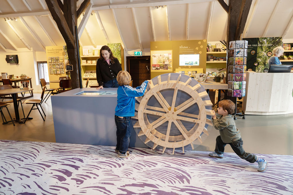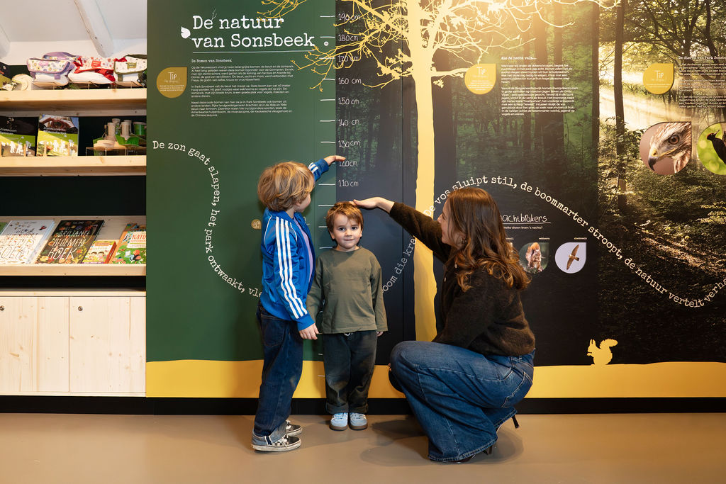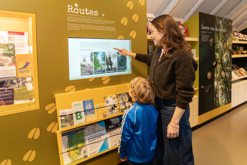 Het vernieuwde bezoekerscentrum brengt de drie Arnhemse parken Sonsbeek, Zypendaal en Gulden Bodem tot leven en laat zien hoe deze verbonden zijn met de Veluwe en Veluwezoom. Bij binnenkomst loop je direct tegen een mooi nieuw maquettemeubel aan dat een overzicht geeft van Park Sonsbeek. Een stukje verder krijg je informatie over het ontstaan van het gebied via een interactief element. Door het verschuiven van een blad krijg je informatie op het scherm te zien over het betreffende tijdvak. De wanden zijn voorzien van informatie over diverse thema’s die te maken hebben met natuur, landschap en duurzaamheid. Op kinderhoogte zijn diverse puzzels en quizvragen opgenomen.